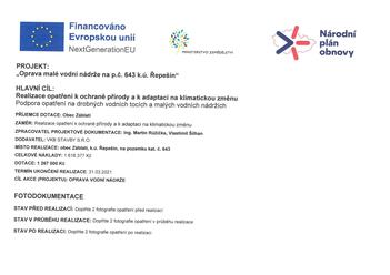 Oprava malé vodní nádrže na p.č. 643 k.ú. Řepešín